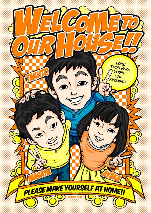似顔絵ROCKEDGEでは、インパクトがあって「ちょっとカッコイイ似顔絵」を描く事をモットーに、福岡で活動中のイラストレーター「ROCKEDGE」が、お客様一人ひとりの似顔絵を、一枚一枚、心をこめて描き下ろします!