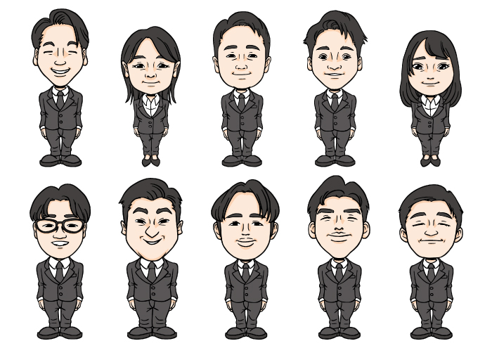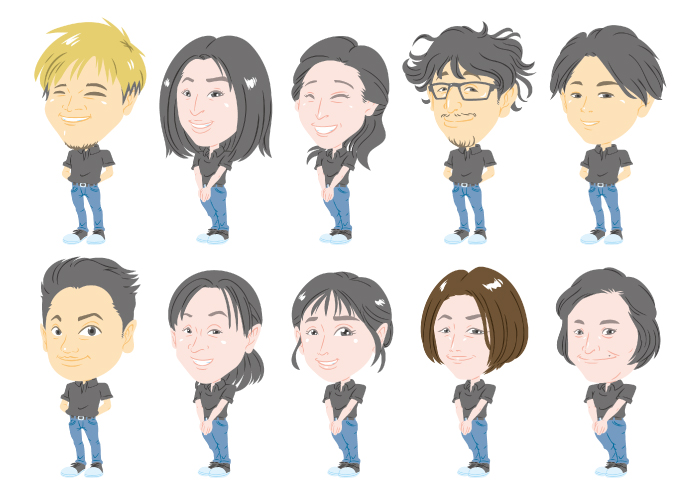 その他大人数の似顔絵など、色々な似顔絵の制作も幅広く承っております!別途お見積もりをいたしますので、コチラのお問い合わせフォームから一度お気軽にお問い合わせください。